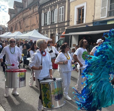 Les 27 et 28 septembre, la ville de Houdan a vĂ©cu deux jours hauts en couleur Ă lâoccasion de la traditionnelle Foire Saint Matthieu. Pour cette Ă©dition, notre troupe Companhia de Cycy a eu le plaisir dâanimer les rues avec toute lâĂ©nergie du carnaval brĂ©silien.