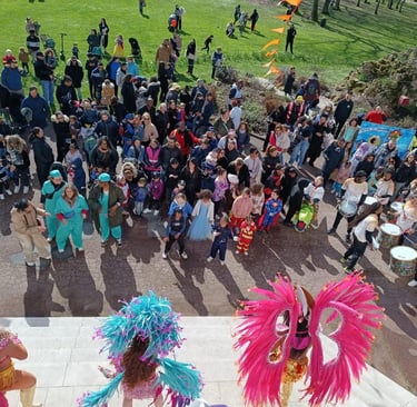 Le défilé est parti à 10h depuis la cour de l’école Michel Lefèvre élémentaire, rassemblant familles, enfants et habitants venus nombreux pour participer à cette fête populaire. Tout au long du trajet, la troupe a accompagné les participants avec ses musiciens et danseuses, créant une atmosphère joyeuse et festive qui a transporté le public au cœur du Brésil.